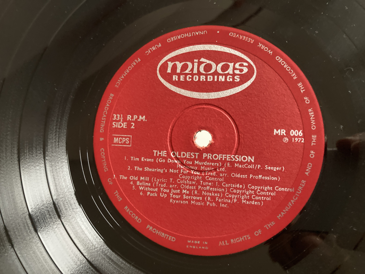 Folk rarity on reputable Midas label in top condition with outstanding tracks "Anathea" and "The Springhill Disaster".